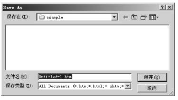 (2)在“保存在”列表框中,确定要把文件保存在哪个文件夹下。在此应把文件保存到本地站点的“example”文件夹中。