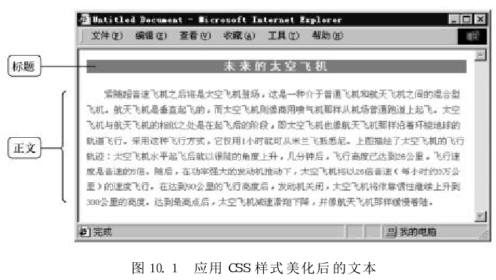 应用css样式分别对标题及正文进行文本格式化,浏览效果如图所示。